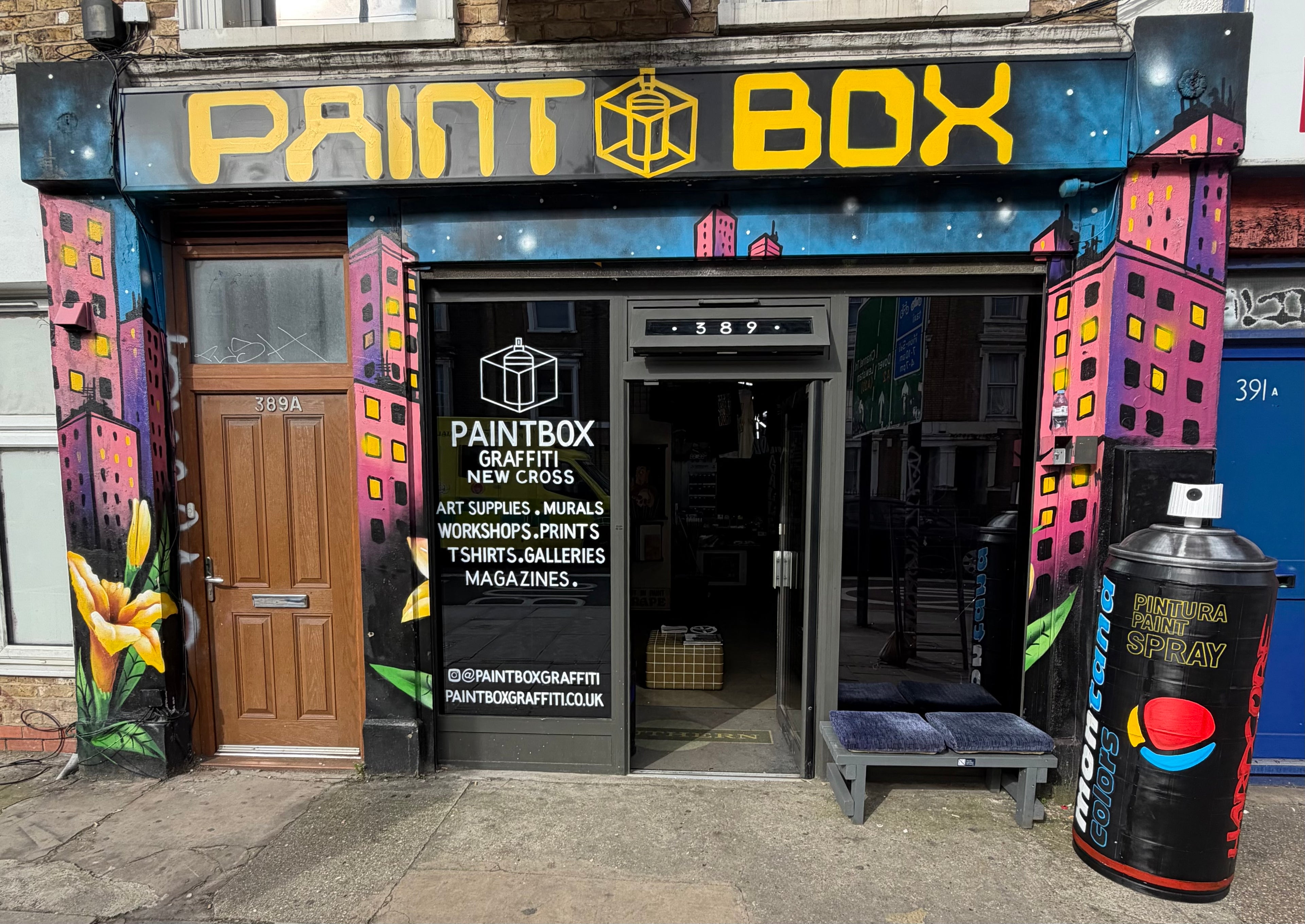 Paintbox Graffiti is a leading graffiti and street art supply store based in New Cross, South East London. We stock a wide range of premium spray paints, graffiti markers, caps, and street art accessories, including trusted brands like MTN, Molotow, and Flame Orange. Our shop also carries graffiti magazines (including UK Frontline), street art books, and exclusive Paintbox T-shirts.